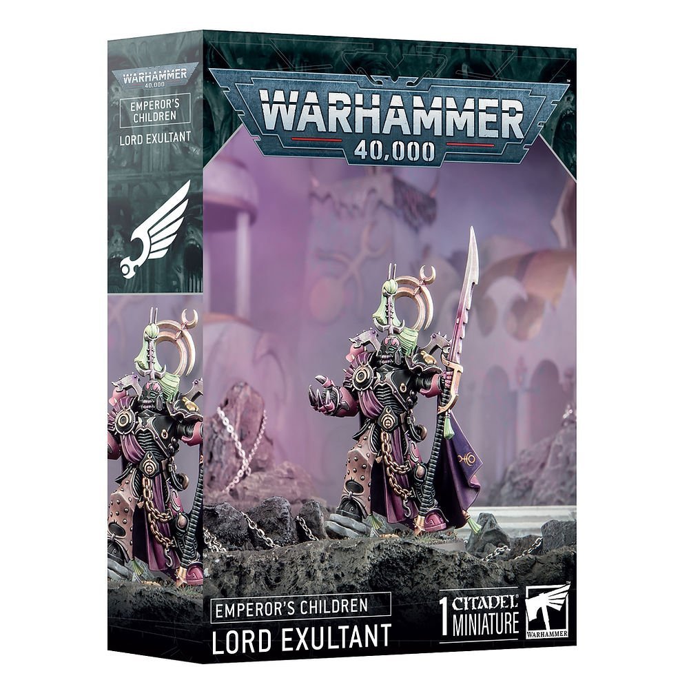 This multipart plastic kit builds one Lord Exultant, a decadent leader for your Emperor’s Children armies in games of Warhammer 40,000. This flexible kit can be built with your choice of power fist, plasma pistol, or rapture lash in one hand, and power spear, power sword, or screamer pistol in the other. You can also assemble the miniature with a choice of bare or helmeted heads to further customise your model. However you build them, this hedonistic character is ideal for cutting down enemy warriors in the name of Slaanesh.